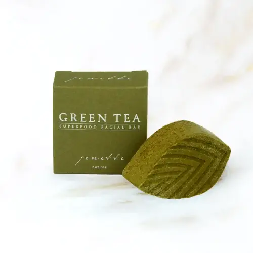 Serrins reccomends her Be Clean Detoxifying Elixir oil as her first cleanse in the PM, followed by her Green Tea Superfood Facial Bar, leaving her skin extra clean, calm and bright, always fighting off summer damage.