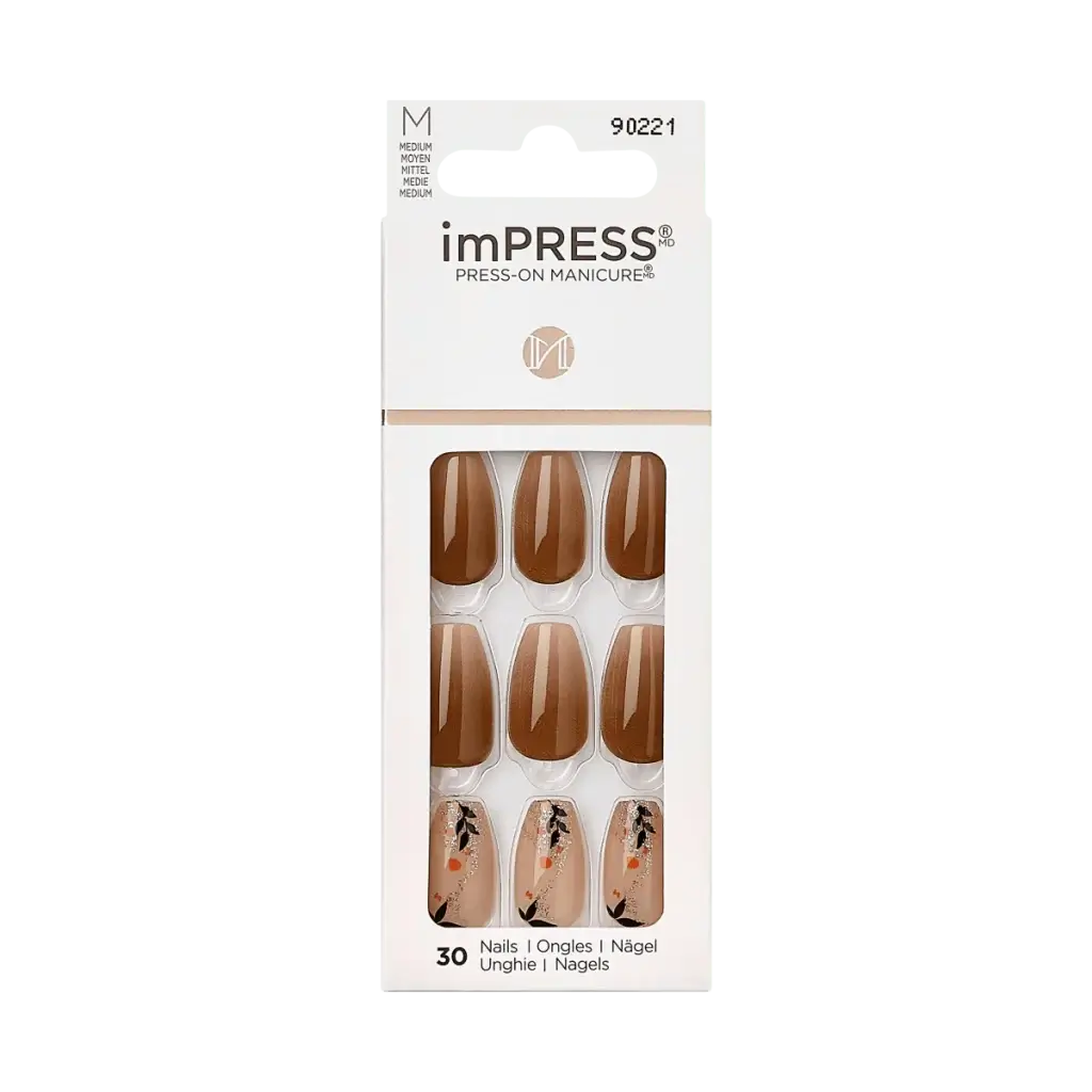 For an extra oomph, add Falscara Mocha Wisps ($7.99) and matching mani. We recommend the styles below from KISS Products and imPRESS Beauty.