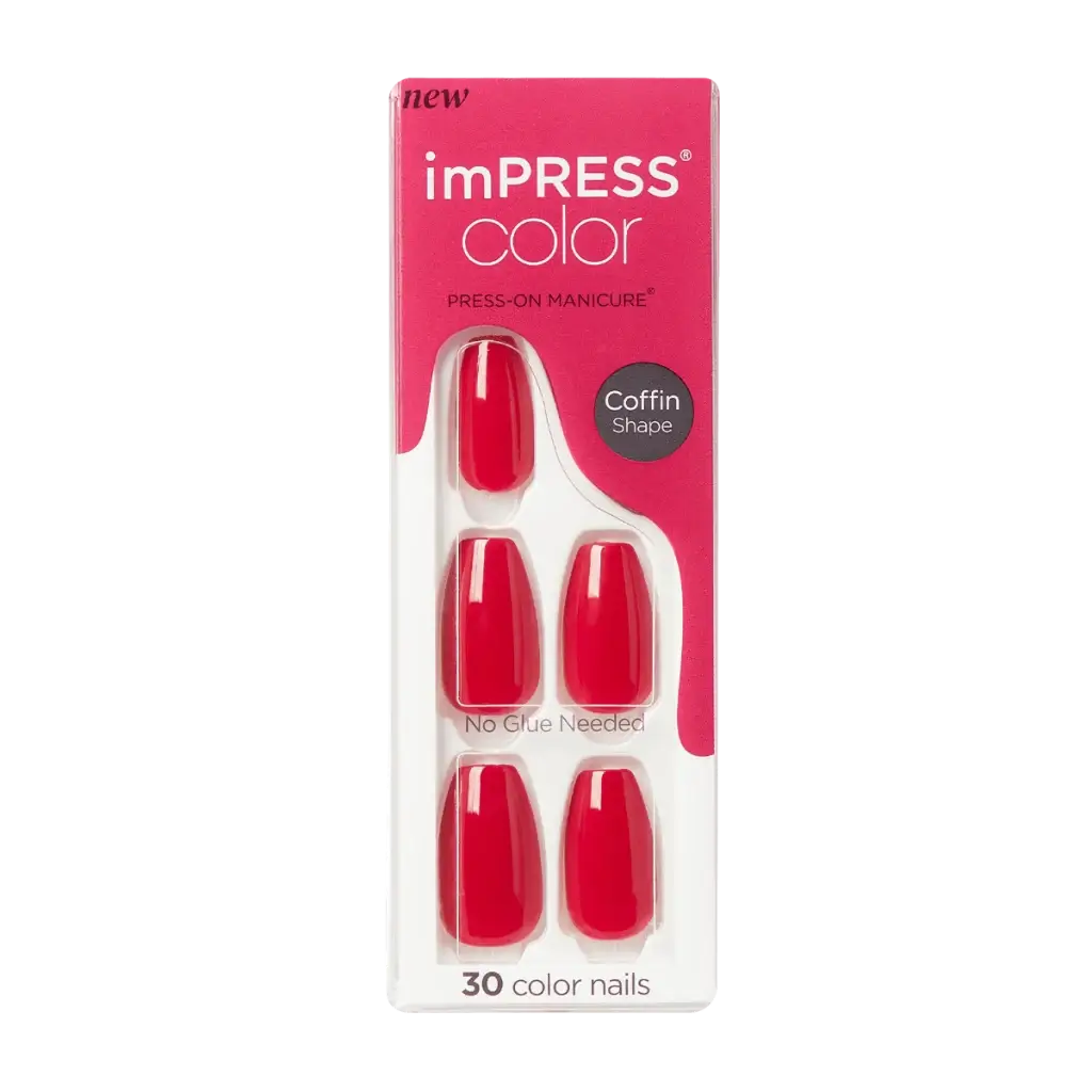 Slay Color, Your Way–No bling, accents, frills, or spills! In 100+ solid shades, NEW imPRESS Color nails come in as many fashion-forward hues as nail polish. For a flawless mani in minutes, just press on & go!